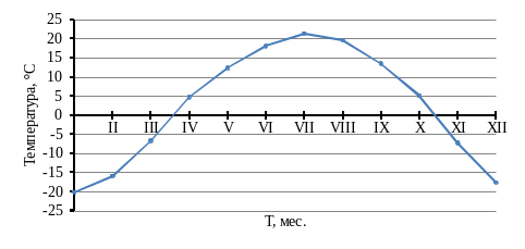 Среднегодовая температура воздуха за многолетний период составляет плюс 2,2 °С. Среднемесячная температура самого холодного месяца (январь) составляет минус 20 °С. Среднемесячная температура самого теплого месяца (июль) плюс 21,3 °С. Температура воздуха наиболее холодной пятидневки, обеспеченностью 0,92 – минус 29 °С.
