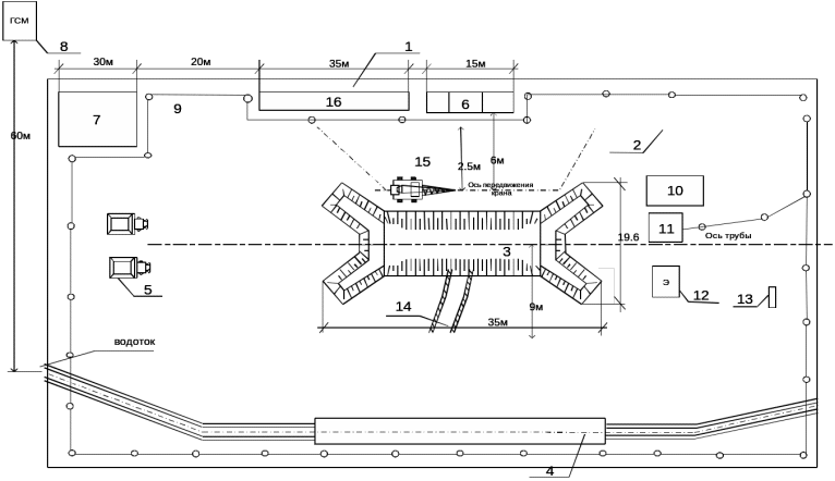 Рисунок 4.3. Схематический план строительной площадки сооружения трубы: