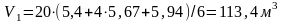V = 113,4+129,6+231,12+346,33+242,72+17 = 1080,17 м3.