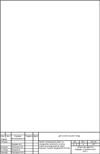В данном дипломном проекте разрабатывается проект производства работ участка протяженностью 29 километров (ПК400-ПК429) новой железнодорожной линии Беркакит-Томмот-Кердем под тепловозную тягу с одним главным путём.