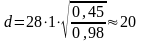 Диаметр шпуров рассчитывают по формуле
