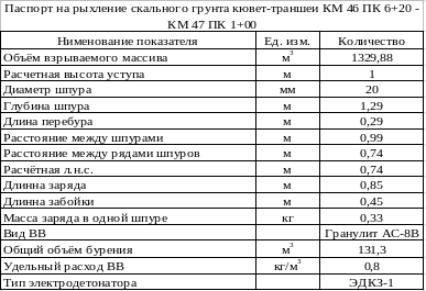 5.2.14 Паспорт буровзрывных работ на разработку кювет-траншеи