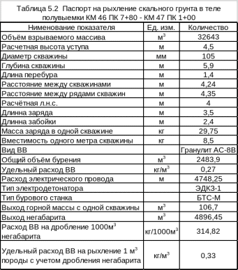 5.2.4 Паспорт буровзрывных работ на разработку тела выемки