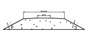 Верх земляного полотна проектируется в виде трапеции шириной поверху 2,3 метра, высотой 0,15 метра, и с основанием, равным ширине основной площадки земляного полотна. Минимальная ширина обочины - 0,4 метра.