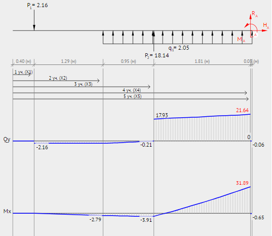 Рисунок 23, Эпюры Mx и Qy активного давления по борту котлована.