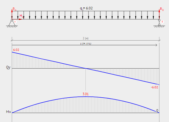 Mmax=(q*L2)/8= (3.01*22)/8=3,01 кНм. (2.6.12)