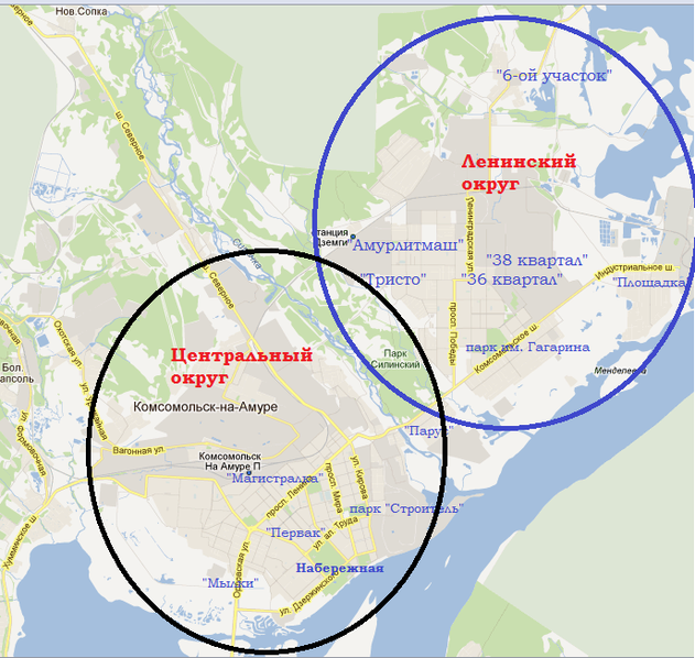 Рисунок 1.1 - Карта города Комсомольск-на-Амуре