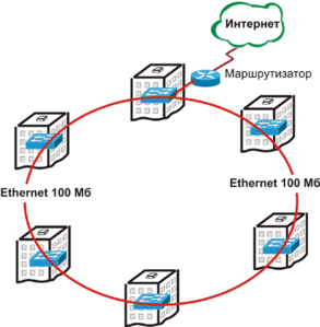 Рисунок 1.5 – соединение абонентов по технологии «кольцо»