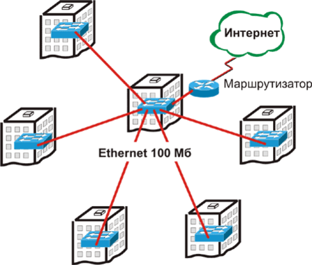 Рисунок 1.4 – Соединение абонентов по технологии «звезда»