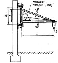Расстояние между стрелой и оттяжкой l по аналогии с подобными кранами