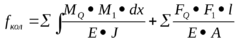 Прогиб за счет деформации колонны (изгиб и сжатие) определяем методом Верещагина. Расчетная схема смотри выше. Эпюры изгибающих моментов от веса поднимаемого груза Q показаны на рисунке , от единичной силы, приложенной в точке А , где приложена и сила Q.