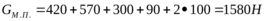 PCT =( FQ + GЗАХВ )V/ 601000η =(10000+300)8/6010000.7 =1.96 кВт