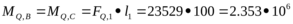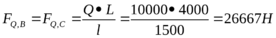 Нагрузки в точках В и С и реакции в опорах 1 и 2 от силы Q