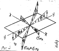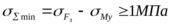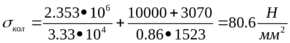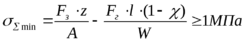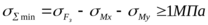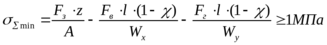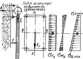 б) напряжения сжатия от натяжения каната (наклоном каната к стреле пренебрегаем, так как он мал)