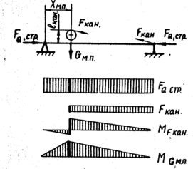 апряжения в стреле определяем в опасном сечении, где расположен механизм подъема. На рисунке показаны приложенные к стреле нагрузки. Усилия натяжения каната