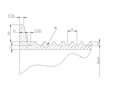 Длина барабана Lбар= lн+ lp+lраз+lкр= p(zp+6), где lн=1,5p расстояние до начала нарезки; lp=zpp длина рабочей части барабана; zp=