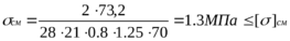 где: Т = 73,2 Нм. – максимальный момент передаваемый шлицевым соединением; dш = 28 мм. – диаметр шлицев; z = 21 – число зубьев; m = 1.25 мм. – модуль шлицевого соединения; l = 70 мм. – длина контакта в шлицевом соединении.