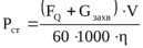 Мощность (кВт) при подъеме номинального груза весом FQ (Н) с установившейся скоростью V (м/мин) статическая мощность