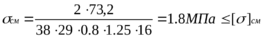 где: Т = 73,2 Нм. – максимальный момент передаваемый шлицевым соединением; dш = 28 мм. – диаметр шлицев; z = 29 – число зубьев; m = 1.25 мм. – модуль шлицевого соединения; l = 16 мм. – длина контакта в шлицевом соединении.