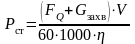 Мощность (кВт) при подъеме номинального груза весом FQ (Н) с установившейся скоростью V (м/мин) статическая мощность
