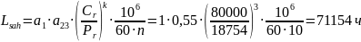 – коэффициент корректирующий ресурс в зависимости от особых свойств подшипника для обычных условий, для шариковых подшипников стр.117 [5]