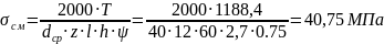 Рассчитываем напряжение смятия на боковых поверхностях зубьев: