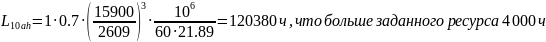 - расчётный скорректированный ресурс подшипника