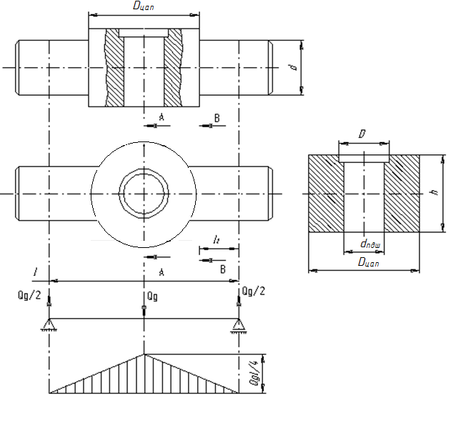 1.8.3. Расчёт оси блока и траверсы на изгиб