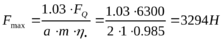 Разрушающая сила каната Fразр K Fmax 6 3294 =19764 Н;