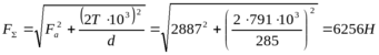 RxБ = (Fr * l + Fa * Dк/2)/L = (2836*126 +2887*218/2)/220 =3055H