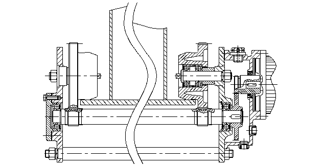Открытая зубчатая передача представляет собой колесо, нарезанное на реборде колеса тележки, и шестерню, нарезанную на валу тихоходного вала закрытого редуктора.