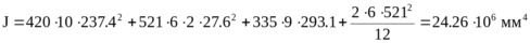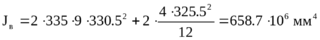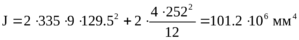 Момент инерции определяем, пренебрегая собственными моментами инерции поясов.