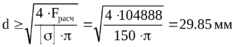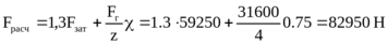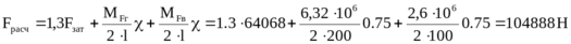 Расчетная нагрузка, действующая на болт в верхней опоре, стрела перпендикулярна стыку: