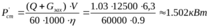 Мощность при подъеме номинального груза весом Q с установившейся скоростью V: