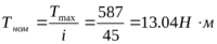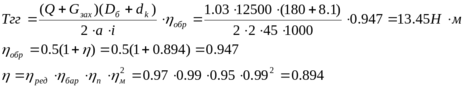 Номинальный момент электродвигателя, требуемый по условию разгона: