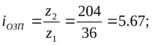 Передаточное отношение открытой зубчатой передачи(ОЗП):