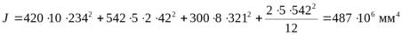 Момент инерции определяем, пренебрегая собственными моментами инерции поясов.