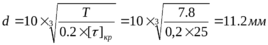 опускаемые касательные напряжения кручения []кр принимаем равным 25МПа