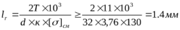 лина соединения из расчета по напряжениям смятия: