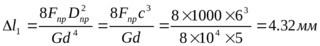 Осадка одного витка пружины под действием силы Fпр: