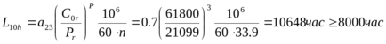 Сr = 61.8 кН; С0r = 37.5 кН; КБ = 1.3; КТ = 1; V = 1.