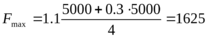 RxА = (Fr * (l+L) + Fa * Dк/2)/L = (2836*346 +2887*218/2)/220 = 4474H