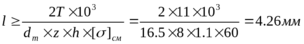 Рабочая длина шпонки lР из расчёта по напряжениям смятия: