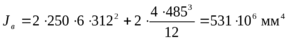 Момент инерции определяем, пренебрегая собственными моментами инерции поясов.