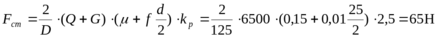 FN = Gп.ч + Gкол+ FQ = 2023 + 15015 + 6500 = 23538 H
