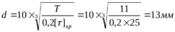 Рекомендуемый предел прочности материала проволок в = 1800 Н/м2;