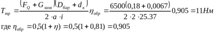 м = м sм 1,25 * Fпр * max = 1,25 *1000 * 0,4 = 500Нм