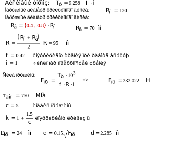 Тmax = Fmax*(Dб+dк)*m = 4445(220+7,4)*1 =515.7 Н*м.