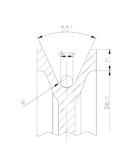 Применим одноребордные колеса с бочкообразным ободом. При точечном начальным контакте для стальных колес предварительный диаметр: