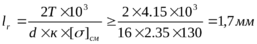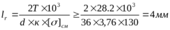 Рабочая длина шпонки lР из расчёта по напряжениям смятия: